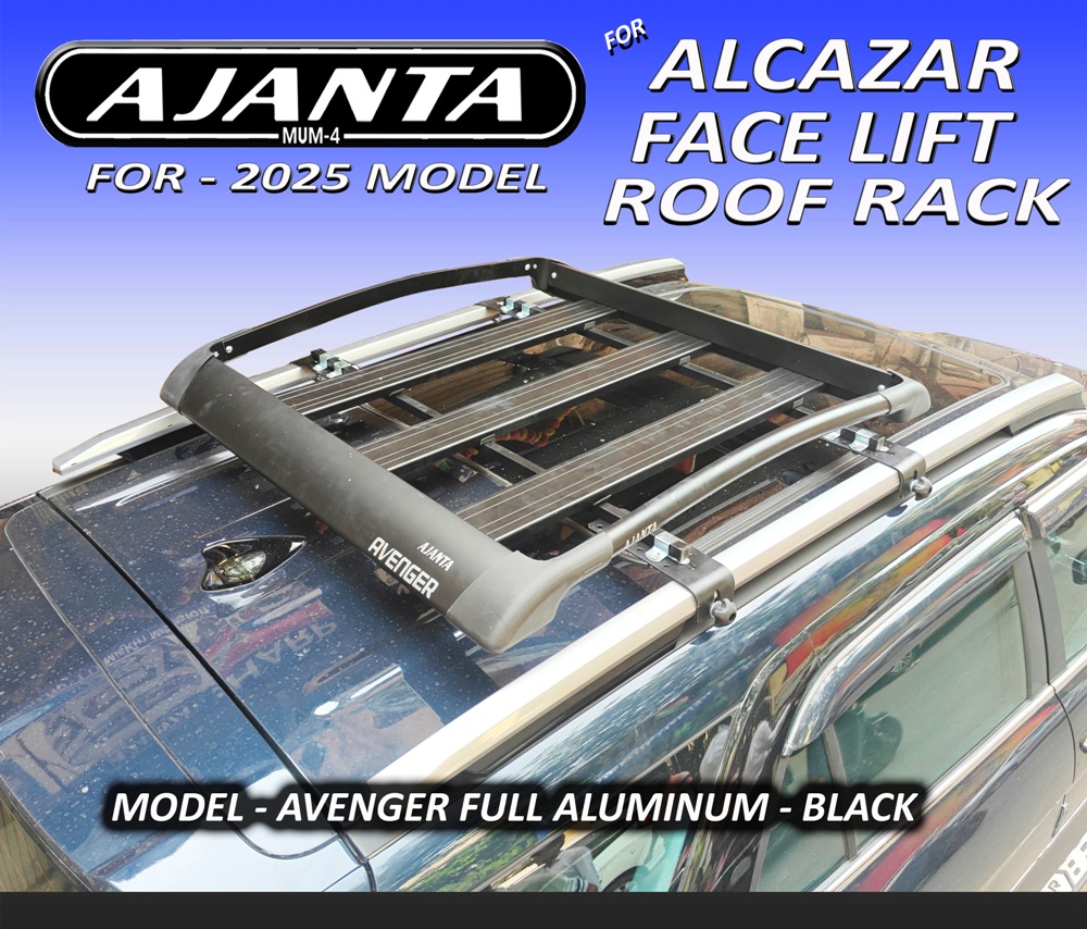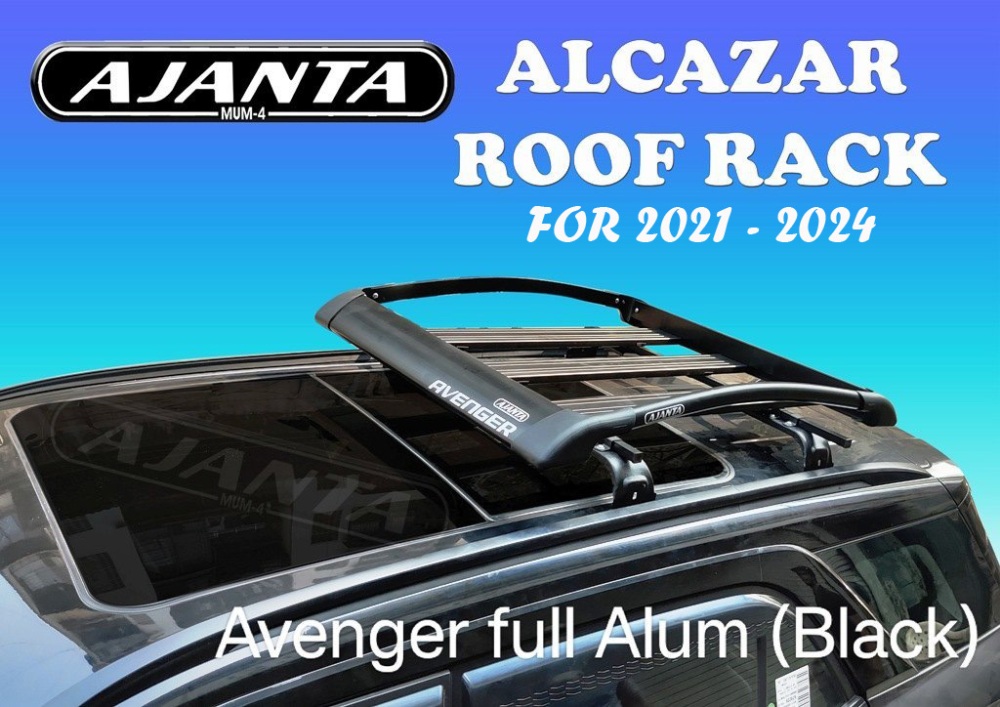 ALCAZER FACE LIFT 2025 - Avenger full Carbon black carrier Ajanta avenger full powder coating aluminum / mild steelroof rack for Alcazer, Ajanta Avenger plus Roof Rack made rustproof anodize aluminum & powder coating brackets that allows it to be lightweight and strong rack.The perfect for carrying luggage for Hyundai Alcazer - 2025.(sunroof model) Ajanta Avenger full roof rack and its mounting system must have a structural integrity capable of keeping the rack and its contents securein the most demanding conditions..Easy to installationNo drilling required ....