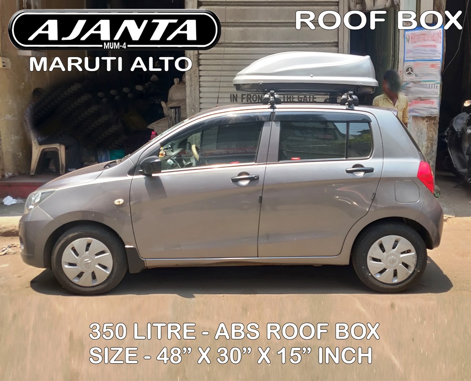 MARUTI ALTO roof box 350 litre roof box equal to a large car boot size, Alto roof box made Aerodynamic design to reduces wind resistance and noise & Tough, Scratch resistant ABS material UV protected materials prevent the roof box from becoming brittle or cracking, For more secure – key cannot be removed unless locked, Family size roof box, Quick fit mounting system, 1 side (left side) opening, Load capacity: 60kg