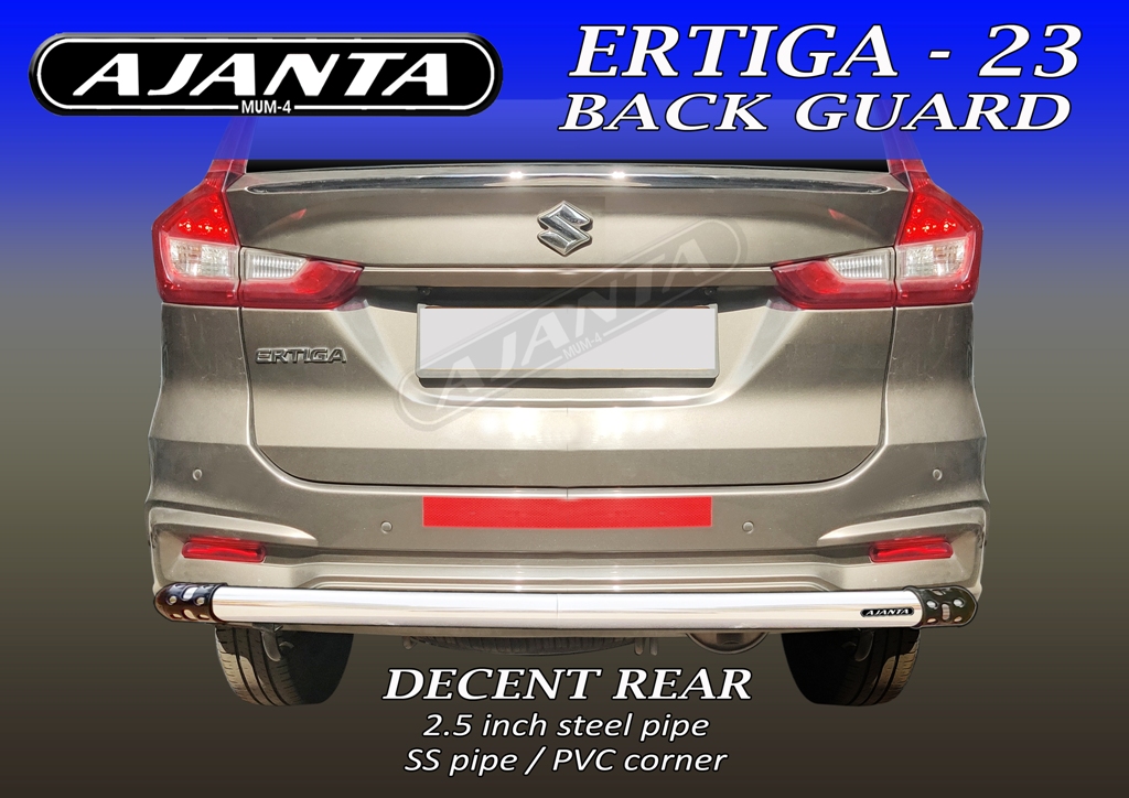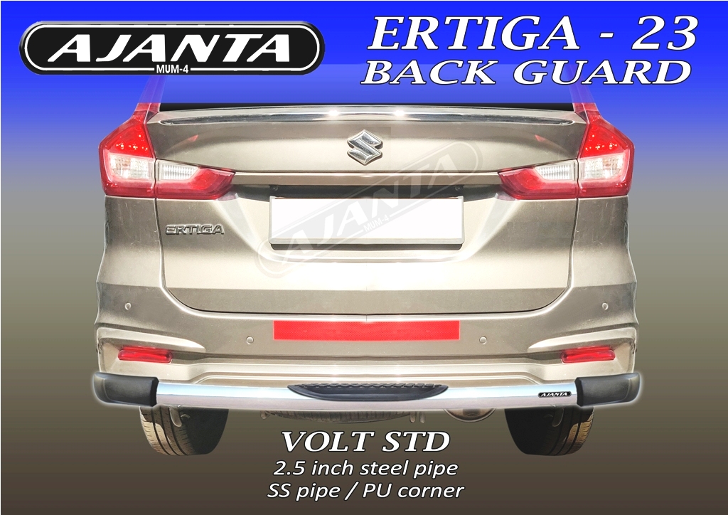 Ajanta -Ertiga - Volt rear guard made from superior quality of stainless steel ensuring its rigidness and durability. Ajanta Ertiga Volt Rear Guards are specially for Rear bumper protector.Volt Rear guard made from 2.5 inch steel pipe with pu corner also center abs plastic step integrated with steel pipe, It can be installed without any modifications made to the car or chassis. Ajanta Ertiga Rear guard designed not only to allow your car to sustain an impact without damaging the vehicle's safety systems. It is capable of reducing injury to vehicle occupants in high-speed impacts.... No drilling required.