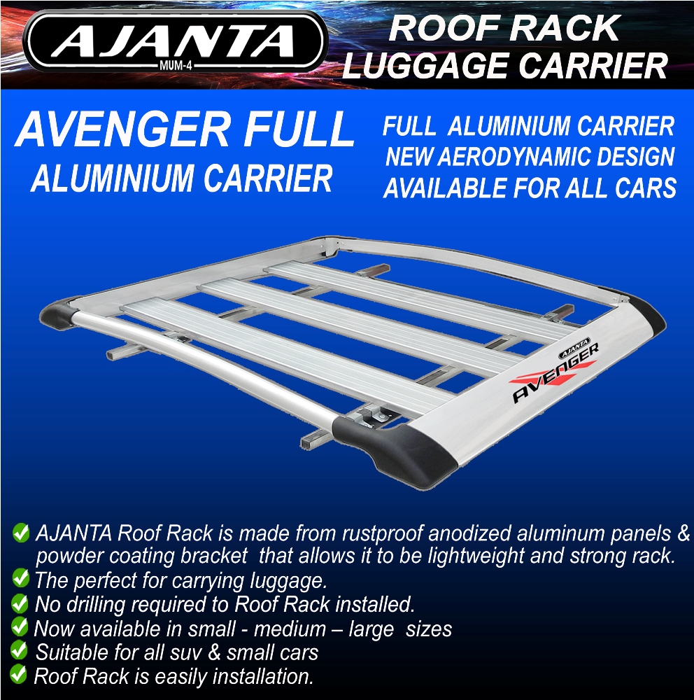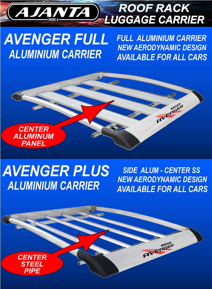 Roof rack-luggage carrier, AJANTA offer MONSTER Luggage carriers & roof rack for new innova 2012, tavera neo 3, duster,eeco,ertiga, venture, aria, bolero, Scorpio, sumo grandy, sumo gold, victa, fortuner, safari décor, I 10, I 20, nano, santro, pajaro captive, fabia, xuv500, Tata winger & many more… Which are made from superior quality of aluminium and steel ensuring its rigidness and durability. We also provide customization to our range of luggage carriers as per the car model and as per requirements of clients. Our exclusive range of MONSTER plus (Aluminium/mild steel) and MONSTER full (full Aluminium) Carrier, which are available for all Cars as above,. These products can also be customized as per car specifications